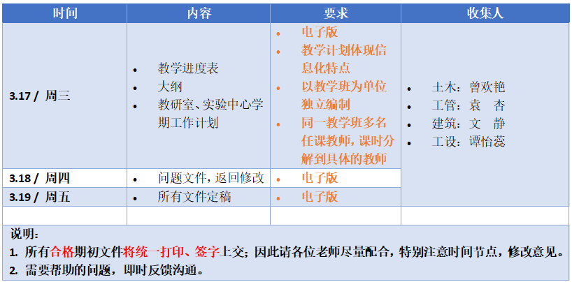 2、本学期所有的理论课与实验课均需准备教学文件,教学文件的编写要以人才培养方案为依据,符合教学大纲要求。