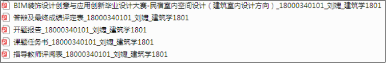 (1)由教研室收集各指导老师毕业设计的电子材料,按班级划分,将同一个班级的放在一个文件夹中,文件夹的命名为“专业+班级”,如:“建筑学1801班”、“工业设计1801班”、“产品设计1801班”。如下图所示: