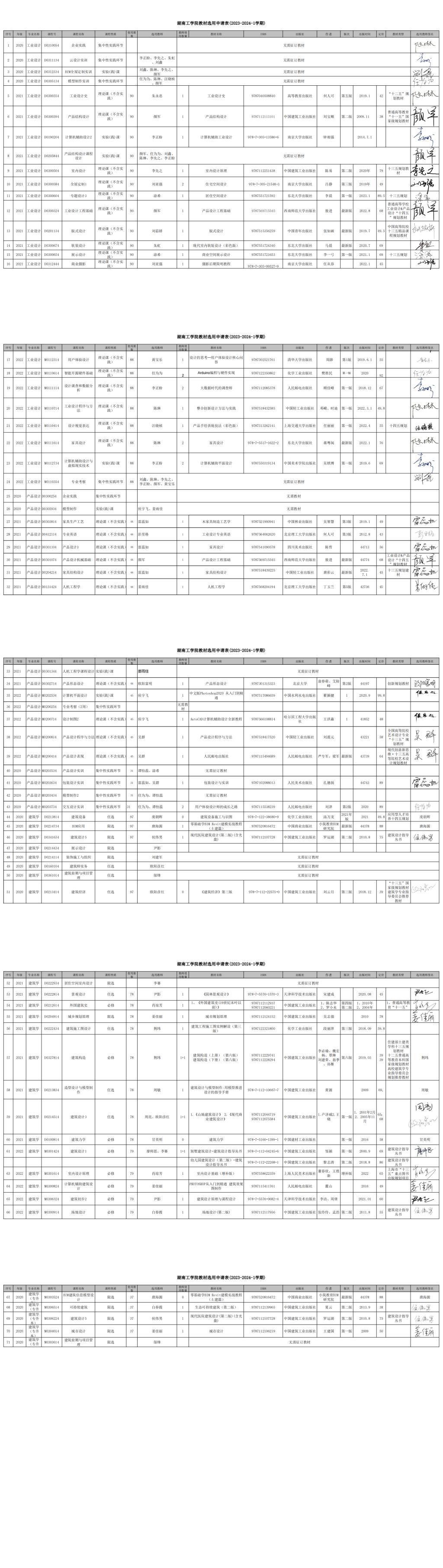 设计艺术学院2023-2024-1学期(20-22级课程)选用教材目录公示