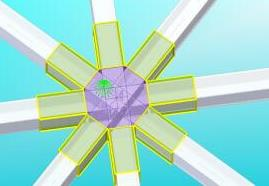 钢结构形式复杂,既有单一规则的片状平面桁架,又有不规则的变截面组合桁架,部分构件呈现出不规则扭曲,Takle节点绘制中反复探索。