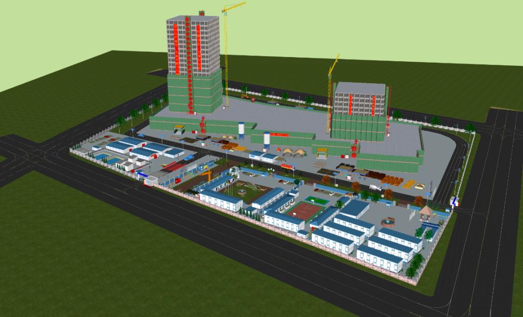 临建阶段保证办公区、生活区、作业区按施工现场规定分开布置、建立全封闭式作业围挡。合理布置塔吊位置,覆盖全部施工作业场地。在施工场地设置安全体验区,保证安全文明施工。(6)三维模板脚手架设计。利用其安全验算功能,对模板脚手架进行验算。不断调整模架参数使之能通过安全验算又能大幅度节约用料。(7)BIMVR展示。通过交互对工程的质量、安全隐患易发部位进行提示指导。对施工工艺节点用视频进行讲解。
