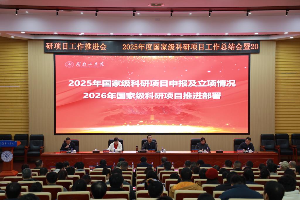 2025年12月31日下午,学校在明翰报告厅召开2025年度国家级科研项目总结暨2026年度工作推进会,全面总结过去一年科研工作成绩,部署新一年重点任务。校党委副书记、校长曾广胜主持会议并作总结讲话。