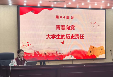 语言与文化学院学生第一党支部书记李一平围绕《铭记苦难辉煌,担当复兴大任》,带领学员回顾党的光辉岁月与艰辛探索,号召大家坚定复兴信念,勇担时代重任。