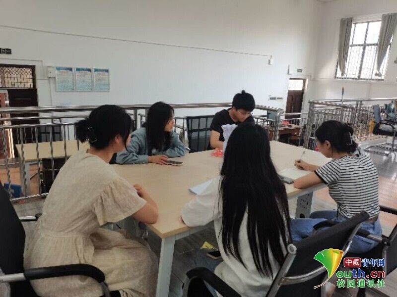 图为“农产品种植产业现状调查和助力乡村振兴”暑期社会实践团进行实践活动相关事宜讨论