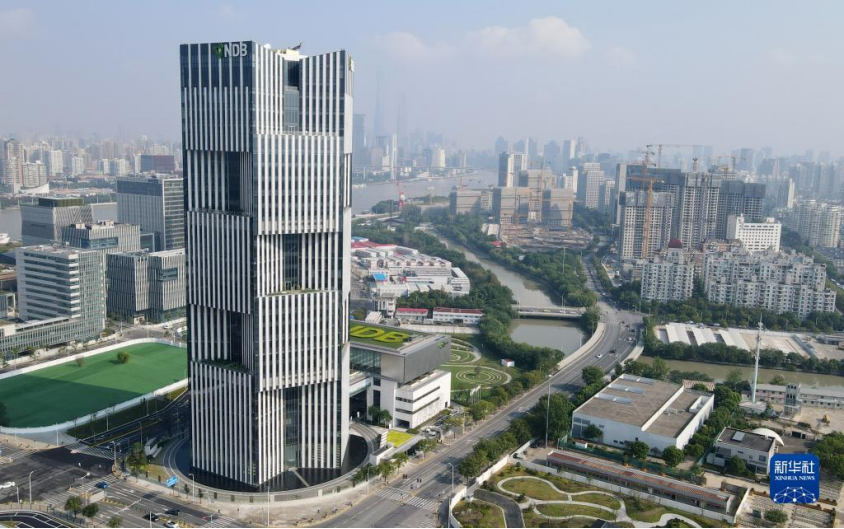 这是位于上海浦东新区世博园区的金砖国家新开发银行总部大楼(2021年9月28日摄,无人机照片)。新华社记者 方喆 摄