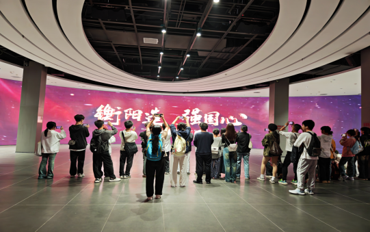在现场教学环节,师生们共同参观了老工业基地文展馆、衡阳造•工创谷、衡阳好物馆以及原衡阳建湘柴油机厂历史建筑群等。在飞行影院中,通过裸眼3D技术,同学们身临其境地感受了衡阳的蓬勃发展,无不感到震撼,连连称赞。大家很有感触地说:这里有丰富的工业老机械实物展出和最先进的科技互动装置,我们在这里“翻阅”了老工业的建设历史,感受衡阳工业发展的辉煌历程,重温那段激情燃烧的岁月。通过沉浸式、情景式的教学,使我们学习和了解了衡阳工业历史进程,近距离感受到了在中国共产党的领导下衡阳工业从无到有、由弱变强的发展历程。