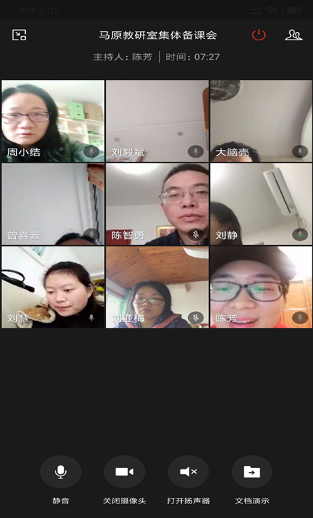 会上,教师们根据2月19日以来开设《思修》、《原理》、《纲要》三门思政课的第一阶段线上授课情况,提出了在线上教学过程中遇到的困惑,比如网络平台不稳定,影响课程进度;互动受限,无法体现教学相长;担忧学生的自主学习能力等。针对以上问题,各教研室成员集思广益、讨论热烈。老师们还交流和共享了各自掌握的案例教学素材。