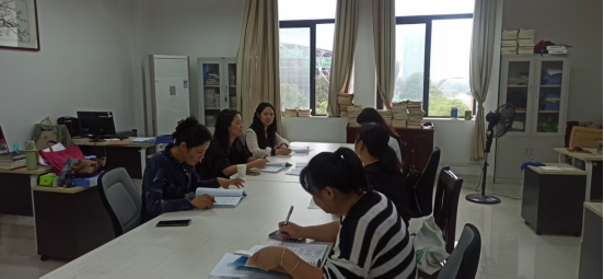 会上,教研室主任首先组织教师们结合本校学情,研讨学生在课上课下经常提出的问题,并对这些问题按教学专题进行分类与整理,提出进一步优化学生问题清单的建议。随后,老师们对照期初教学检查要求,对提交的教学文件和上学期的期末考试材料进行自查和互查,并对发现的问题当场作出整改。