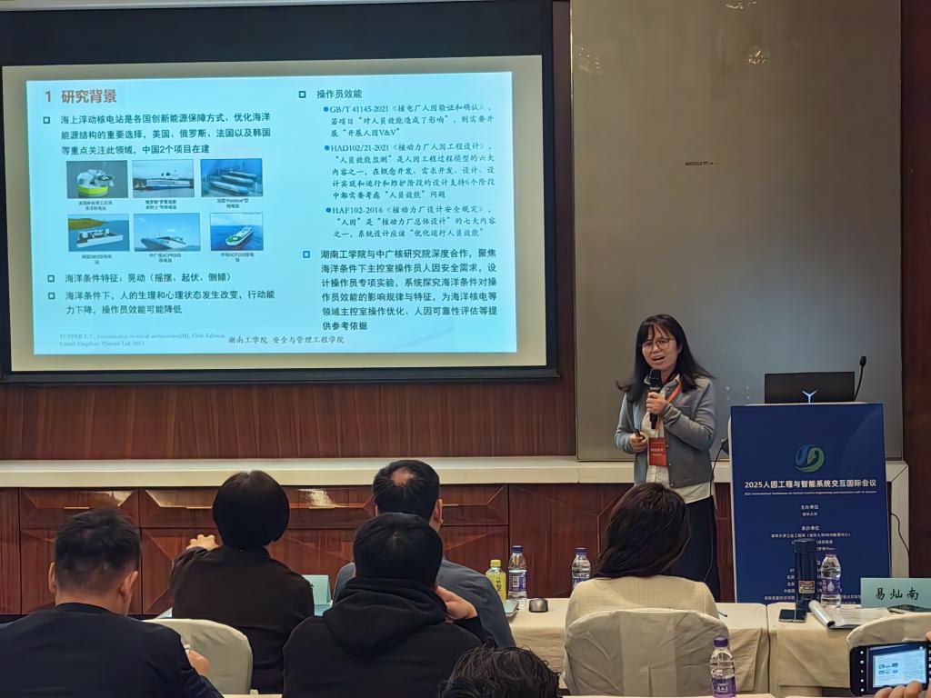 在“智能装备系统人因工程”分论坛,易灿南教授分享了我院人因可靠性与安全团队创新性研究成果——“海洋条件下主控室操作员效能研究”,该研究依托伟德承担的某核电研究院海上浮动堆重点项目开展,探究了海洋条件对操作员作业绩效的影响及操作员生理、心理特征的变化规律与失误机理,报告内容引起热议,体现了我院在复杂系统人因安全相关领域的研究前沿性与研究积累。