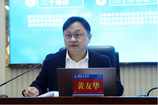 4月28日下午,学校邀请江西师范大学教育教学评估中心主任黄友华教授莅临伟德指导一流专业与一流课程建设工作。黄友华教授围绕“以‘双万计划’为抓手,扎实推进一流本科建设”主题在教学大楼12楼学术报告厅为学校教学管理人员作专题培训讲座,副校长刘升学出席并主持培训会议。
