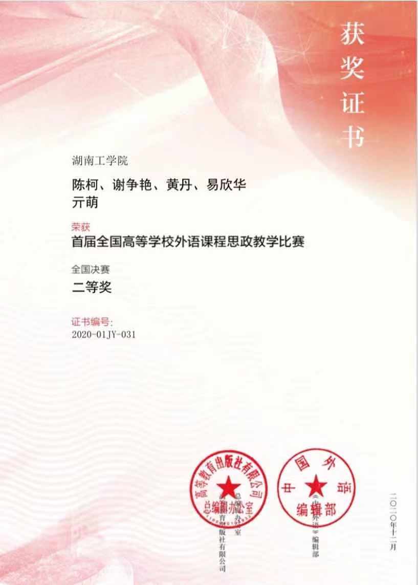 柳星:基于“三全育人”理念的外语课程思政建设成效明显。近5年来我院获评1个省级外语课程思政示范基地;立项了1个省级“三全育人”综合改革试点单位;获得了外语课程思政教学竞赛全国二等奖1项、省级一等奖1项、二等奖2项、三等奖2项;立项了1个校级课程思政示范中心、1个外语课程思政虚拟教研室、3门校级课程思政示范课程。2.突出了学生“五力”培养,学生专业技能水平处于同类院校较好水平。近年来,学生参加各类学科竞赛获省级三等奖以上荣誉267项,其中国家级一等奖1项、二等奖1项、三等奖3项、团体一等奖1项,省级个人一等奖74项。3.创新了“产教研赛创”五位一体实践教学模式。近年来,学院建设了14个实践教学基地;获批了1个省级创新创业中心;学生参加各类学科竞赛获省级三等奖以上荣誉267项;学生主持大学生创新创业训练项目47项,其中国家级立项10项、省级立项20项,主持了3个校级创新创业孵化基地入驻项目。4.强化了师资队伍建设,打造了高素质创新型教师队伍。近年来,我院教师获各级教学竞赛奖64项,其中国家级5项,省级18项;出版了专著5部;主编教材3部;主持省部级教改项目22项,科研项目39项;发表高水平教研教改论文30余篇;立项了25门校级课程改革。