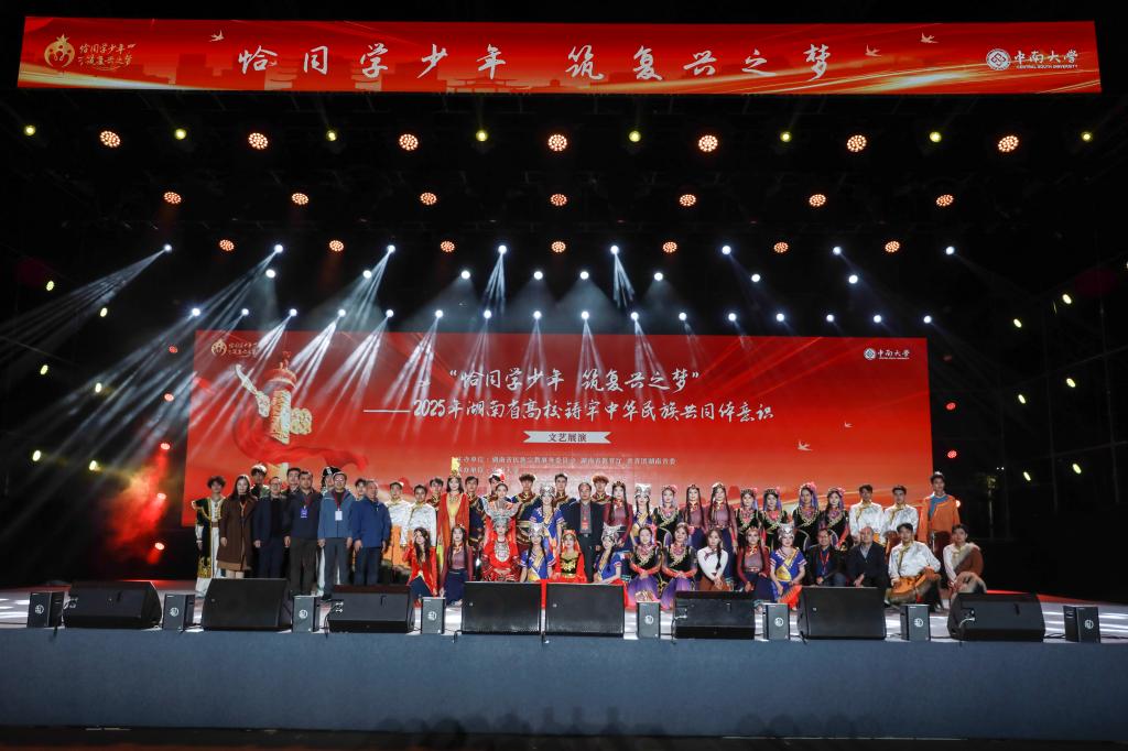 11月5日,“恰同学少年 筑复兴之梦”——2025年湖南省高校铸牢中华民族共同体意识现场展示体验暨文艺展演在中南大学盛大开幕。伟德选送的民族舞蹈《爱我中华》在展演中精彩亮相,以热情洋溢的表演赢得现场观众阵阵掌声,生动展现了各族学子团结一心、奋发向上的精神风貌。党委副书记何建雄携党委统战部、学生工作部、少数民族预科教育部等部门负责人亲临现场观摩指导。