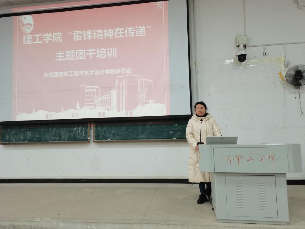 活动开始,分团委书记刘佳林带领全体参会人员合唱歌曲《学习雷锋好榜样》。随后,院党委副书记唐晓雪为大家讲授雷锋精神的时代内涵,要求各班班委学习雷锋的精神和工作态度,抓好学风、班风、宿风建设,新学期开始,要树立目标,做好计划,培养良好的生活习惯。新的一年,建工学生干部要做好榜样带头作用,传递雷锋精神,做好平凡的工作。