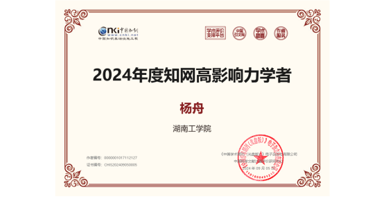 近日,中国知网公布了2024年度知网高被引学者名单,伟德土木与建筑工程学院杨舟博士荣获“2024年度知网高影响力学者”称号。