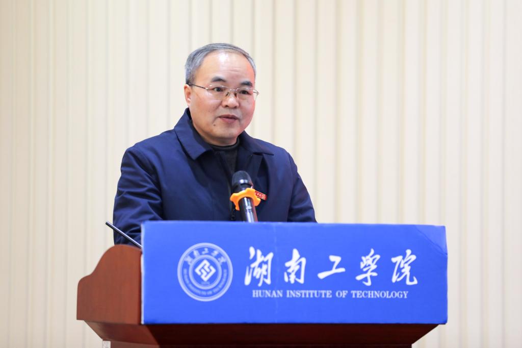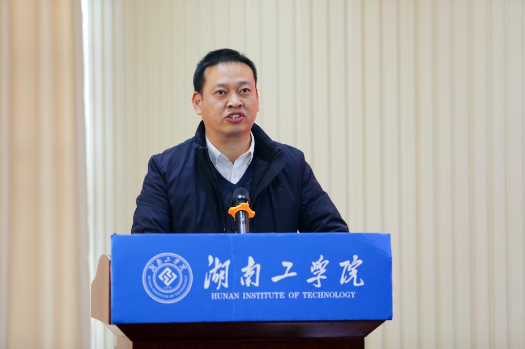 校友代表、中建五局园林公司副总经理、02级工民建专业周晓峰代表校友发言,他回顾了在母校求学期间的收获与感悟,表达了对母校及老师的感恩之情,展望了未来的发展,表示将进一步加强与校友之间、与母校之间的联系,共同为母校添光加彩。