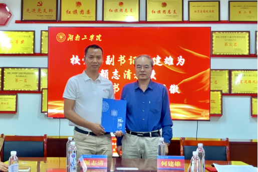 校党委副书记何建雄为颜志清颁发客座教授聘书并讲话。他指出,校友是学校发展的宝贵资源,颜志清校友从“湖工学子”到“企业领军人”的奋斗历程,生动诠释了“勤学务实圆融卓越”的校训精神。此次聘任既是校友反哺母校的典范,也是学院推进“双师型”师资队伍建设、强化校企协同育人的重要举措。他寄语学院以此次合作为契机,深化行业对接,不断提升应用型人才培养质量。