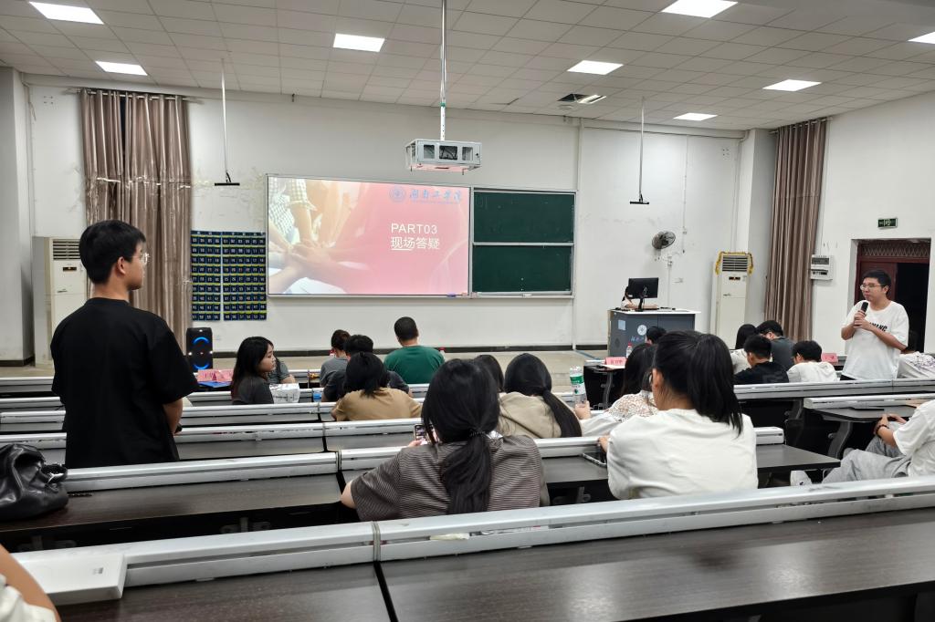在互动交流环节,同学们积极踊跃地提问,六名优秀毕业生结合自身经历,聚焦学习重点,为大家答疑解惑,提供针对性意见和建议。现场气氛热烈。