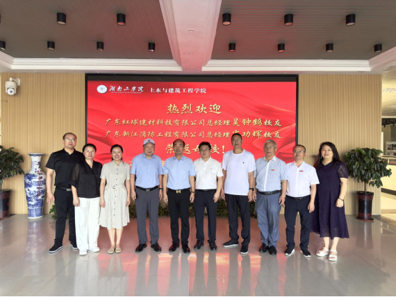 6月17日上午,土木与建筑工程学院在6201举行吴钟鹤、肖功辉校友座谈会。广东红球建材科技有限公司总经理、江门市衡阳商会会长、1994届锅炉压力容器专业吴钟鹤校友携夫人,广东新江消防工程有限公司总经理、2006届工程监理专业肖功辉校友携夫人,江门市衡阳商会副会长邱友意,江门市衡阳商会秘书长刘亚宁出席。学院党委书记黄卫华、院长游春华、副院长唐晓雪、副书记陈浩、理学院党委书记刘璟忠、退休教师张忠球、李立波、三办主任及师生代表20余人参加。座谈会由黄卫华主持。