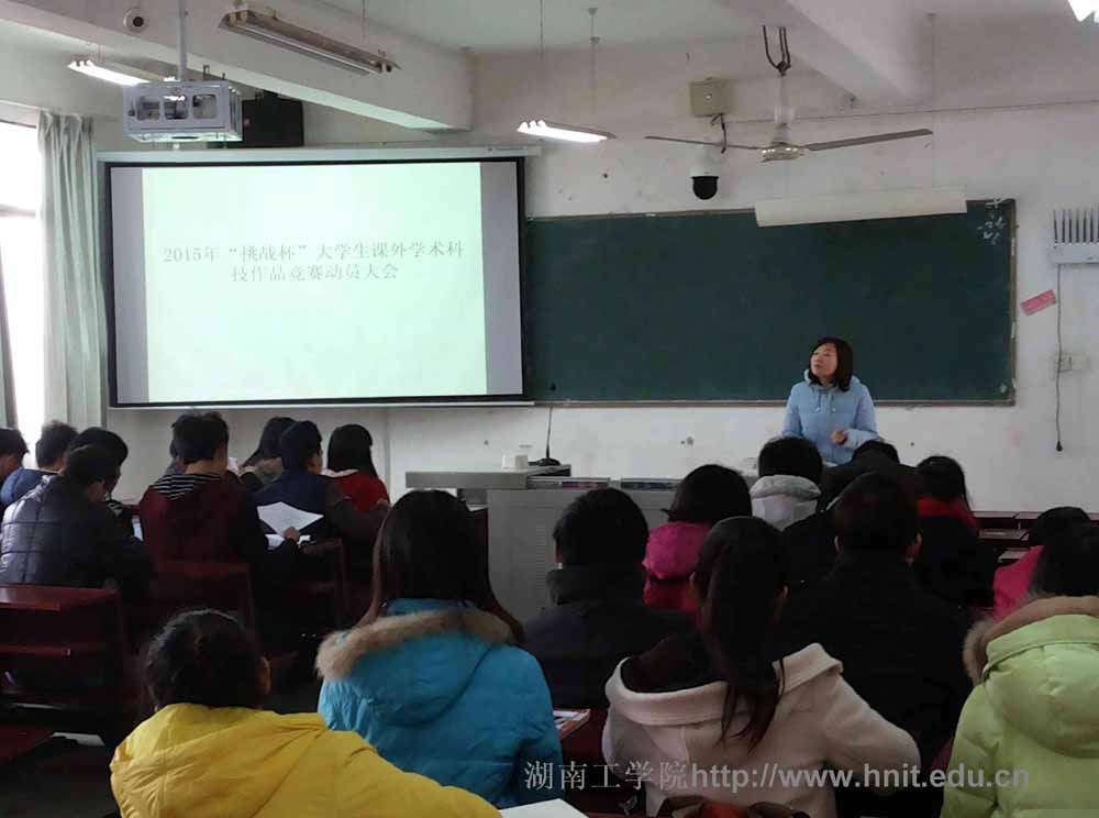 为加强大学生课外学术科技创新意识与创造能力的培养,1月7日下午1时,建工学院在3505教室召开2015年“挑战杯”动员大会。团总支书记黄馨仪,辅导员谭进以及校级大学生课外学术科技竞赛立项负责人及其组员出席会议。