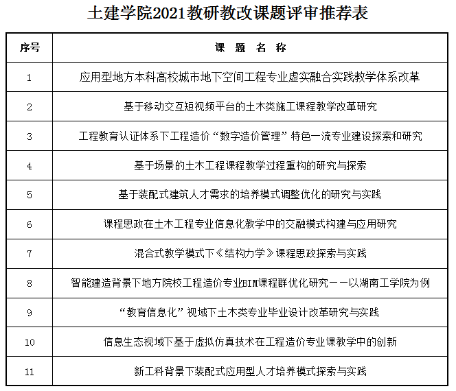 根据学校教务处下发的“关于开展2021年教学改革研究项目立项工作的通知”精神,7月20日学院在暑期第一次工作会议,部署教研教改课题申报工作,要求每个教研室高度重视,将申报工作落实到位。8月16日,唐晓雪副院长组织各教研室主任及专业负责人,为课题申报书进行初步评审,并提出修改意见,课题负责人根据意见进一步修改申报书。截至8月25日,共收到各位老师申报的课题十三份,最终经学院评审推荐下列教改课题参与学校评审: