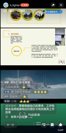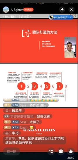 本次线上鲁班讲坛借助现代信息技术实施无边界教学,给同学们分享了行业专家如何打造高效团队,促进在校学生、在异地就业实践的同学,以及已毕业校友们的团队意识的养成,理解团队的重要性。(土木与建筑工程学院)