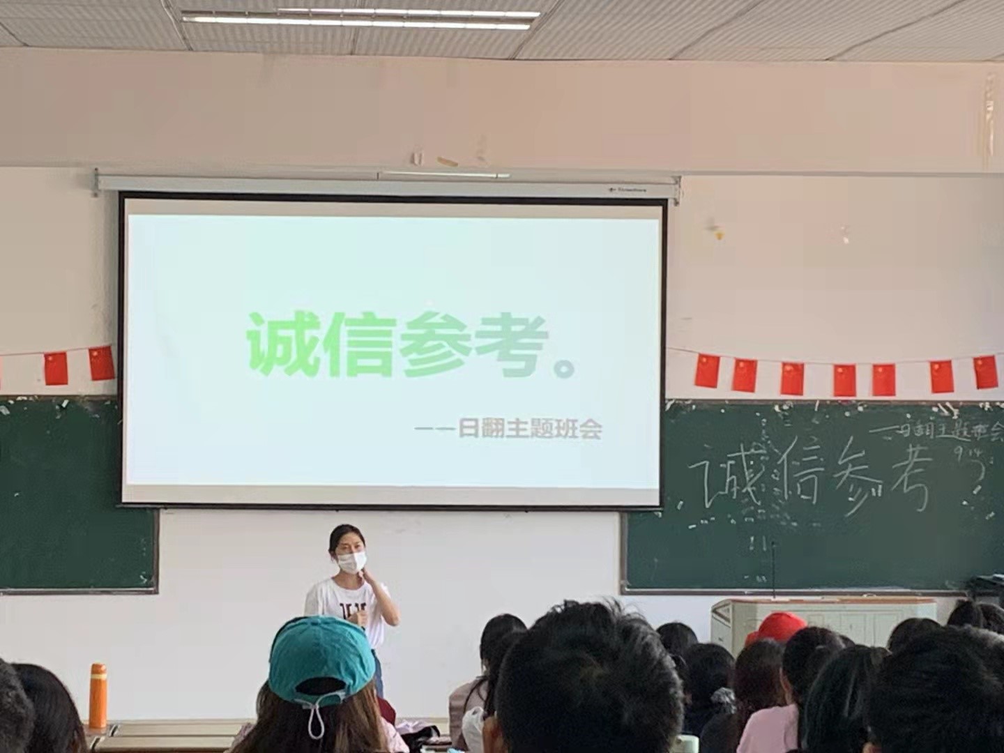 此外,为配合学校宣传部和人事处开展第37个教师节系列活动,以“赓续百年初心,担当育人使命”为主题,在班会上展开了即兴演讲,学生们涌跃发言,表达对老师的尊重和以优异成绩回报老师的决心。(外国语学院日语2001班、翻译2001班供稿)