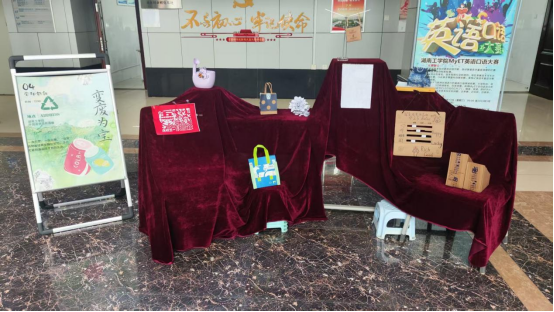 外语楼1楼大厅各种创意作品琳琅满目,有手工作品、绘画作品、剪纸作品,他们都是同学们结合自己的兴趣爱好和技能,利用废弃的易拉罐、塑料瓶、纸箱等材料制作而成。同学们以自己的一双巧手,按照自己的独特创意,使废旧物品重新焕发出生机。活动开展以来,同学们还以环保为主题创作了大量书法作品、短视频作品、摄影作品等,通过创作,提高了动手能力,提升了环保意识。
