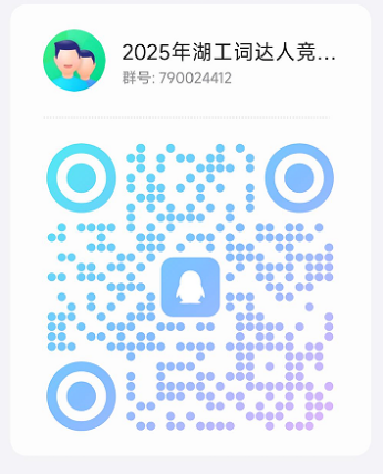 2025年湖工词达人竞赛选手联络1群”和2025年湖工词达人竞赛选手联络2群”(邀请码和二维码如下),具体备赛事宜会在QQ群中发布。