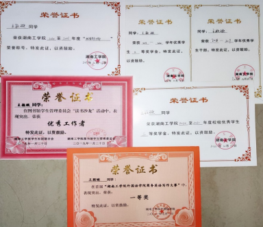 在校期间学习成绩与综合测评成绩连续三年在专业名列前茅,曾获校级优秀学生干部2次、三等奖学金2次、院级优秀共青团干1次; 2021年参加“伟德源自英国1946外国语学院商务英语写作大赛”获得一等奖; 2019年获得校图书管理委员会 “优秀工作者”称号。