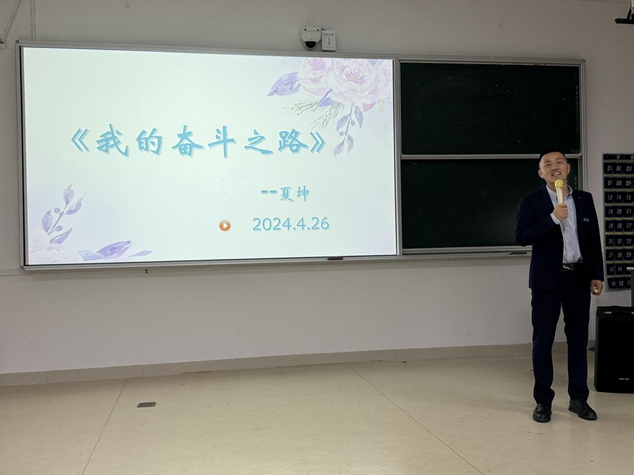 4月26日晚,外国语学院于外612开展校友创业经验分享会。优秀校友、2014届英语毕业生、湖南英特教育创始人夏坤受邀为我院学生作创业经验分享。宣讲会由院党委书记刘斌主持,全体辅导员与部分学生参会。