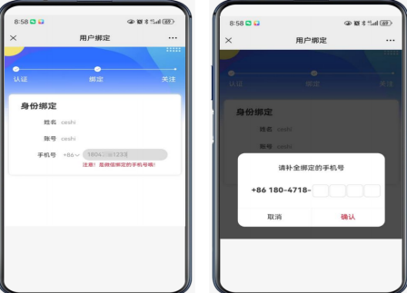 3.登录统一认证平台后会自动跳转至企业微信手机号码绑定页面(需绑定微信实名手机号),如下图所示。