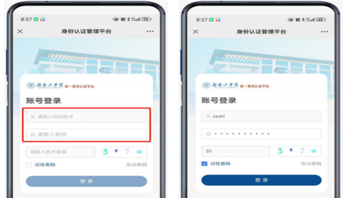 2.在统一身份认证登录页面中输入登录账号和密码,如下图所示。