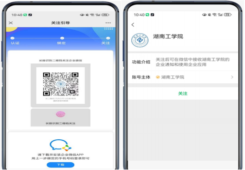 4.绑定成功后会自动弹出伟德源自英国1946企业微信号二维码,长按识别二维码并关注,如下图所示。