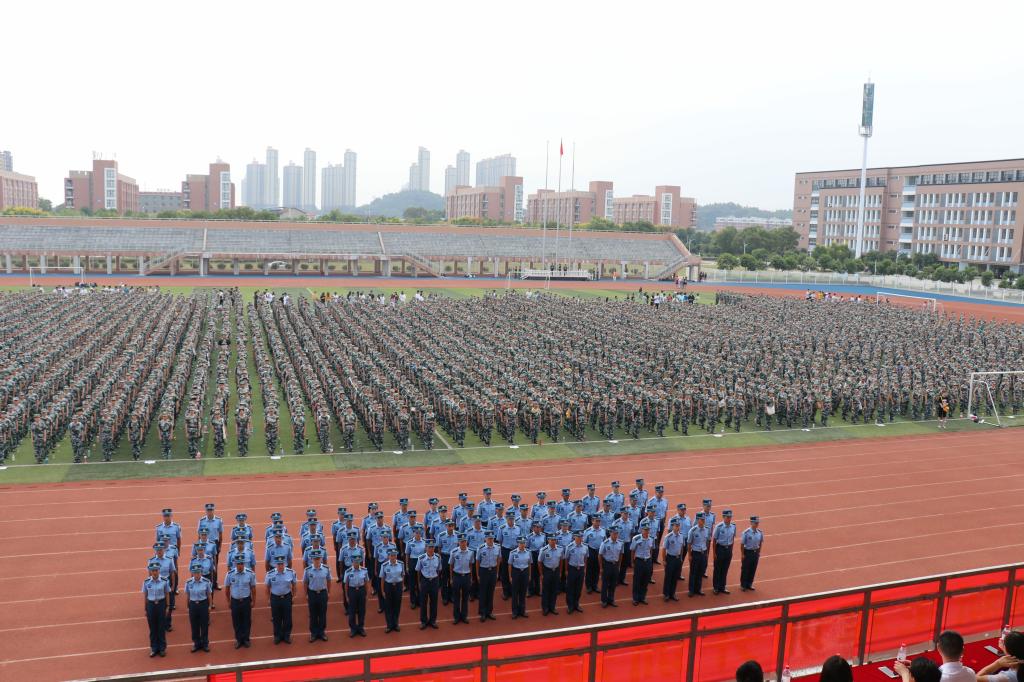 保卫处副处长张帆、各二级学院党委副书记、全体新生辅导员、教练员和4400余名新同学参加了开训大会。(武装部/段磊)