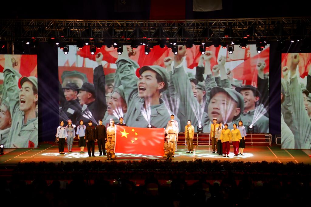△大型歌舞《复兴的力量》,以恢宏气势,表达了青年学子用奋斗书写青春,用真情告白祖国