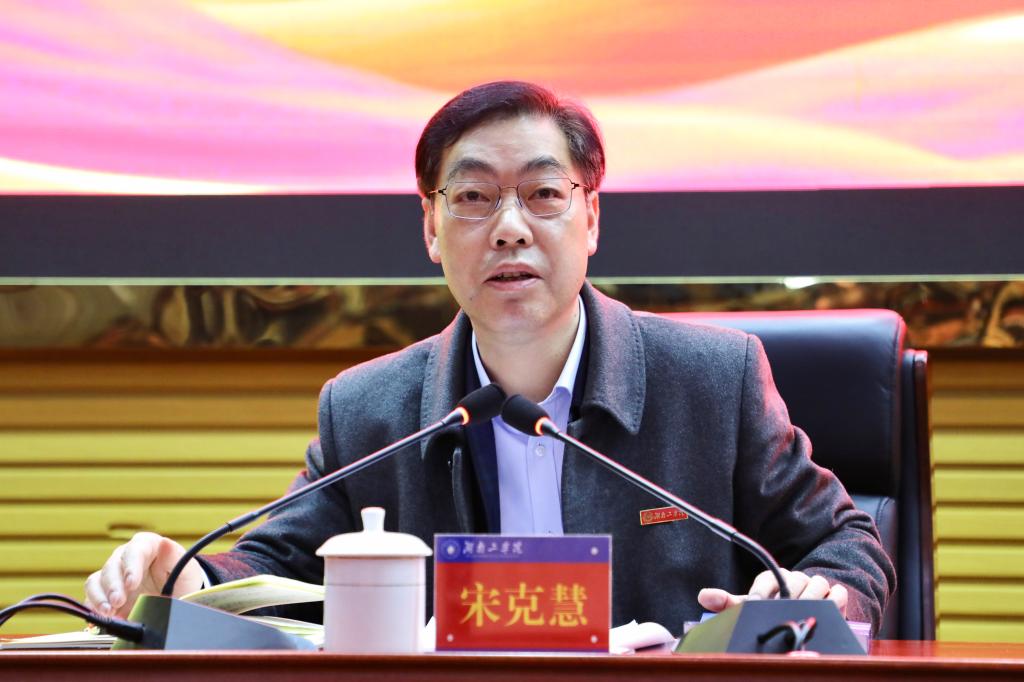 宋克慧指出,要学懂弄通悟透二十大精神,一要真学真懂,始终铭记“三个下功夫”,深刻领会“五个牢牢把握”;二要理解弄通,深刻理解“九个深刻领会”的精神实质和时代要求;三要领会悟透,把着力点放到“七个聚焦”上来。学校要从突出抓好学习培训、精心组织新闻宣传和认真组织研究阐释三个方面抓好党的二十大精神的学习。