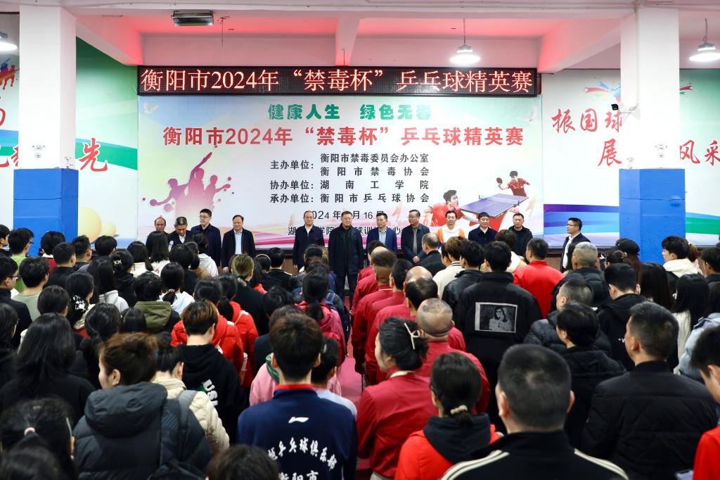 3月16日,以“健康人生 绿色无毒”为主题,衡阳市2024年“禁毒杯”乒乓球精英赛在伟德乒乓球训练中心举行,进一步普及禁毒知识,增强全民禁毒意识,引导人民群众树立积极向上的健康生活理念。校党委书记曹执令,校党委委员、纪委副书记袁勤出席比赛开幕式。衡阳市委常委、市委政法委书记、市禁毒委第一副主任陈礼洋宣布开赛。