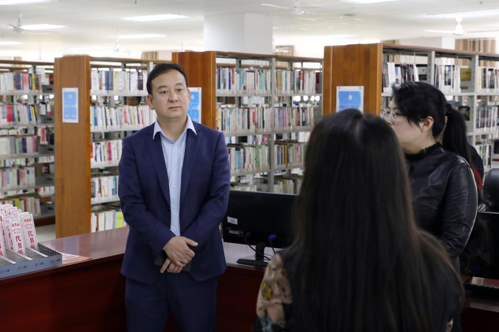 在图书馆,曾广胜一行参观了图书馆自修室、图书借阅室,了解了图书馆藏书建设、文化建设,以及图书馆为师生提供服务的基本情况。他强调图书馆在做好文献服务、知识服务、学科服务等工作的基础上,要多开展创新性工作,希望图书馆能作为学校学术支撑体系的重要单位,要做好馆员队伍建设,持续提升图书馆服务水平,充分发挥图书馆的作用,以服务谋发展。