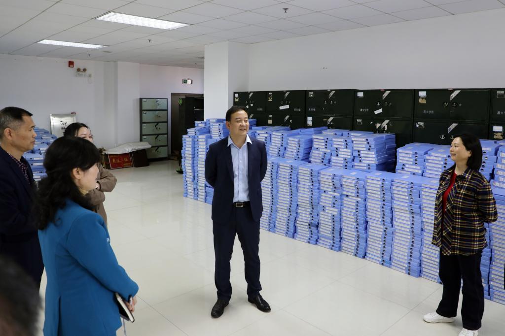 在档案馆,曾广胜一行实地察看了档案馆的办公场景、库房情况,调阅了档案资料、档案实物,询问档案数字化、完整性以及安防措施。他要求档案馆积极稳妥做好档案的数字化、信息化,加强归档工作的严肃性,重要工作、重要事件的档案要确保应交尽交,应收尽收。