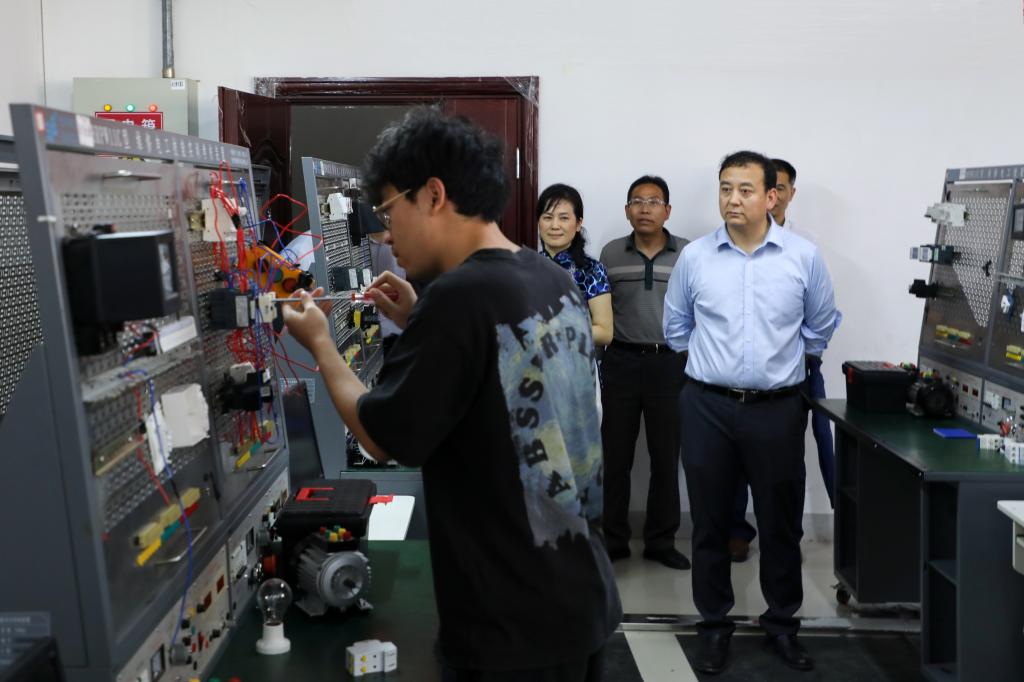 在现代工程技术实践教学部,曾广胜一行全面了解实践教学部的设施设备、课程设置、师资队伍、学生实训等情况,以及运行状况和发展需求。他希望实践教学部继续加强安全管理,确保实训教学的安全和稳定。进一步完善实训课程体系,加强实训教学工作,提高实训教学的质量和水平。以更高的标准、更严的要求、更实的作风,推动各项工作再上新台阶,为应用型人才培养作出更大的贡献。