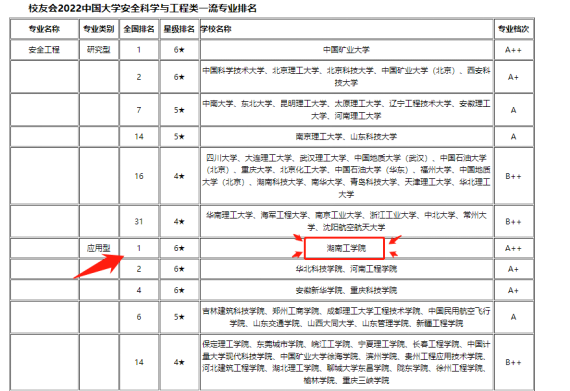 近日,全国第三方大学评价机构艾瑞深校友会网(Cuaa.Net)发布了校友会2022中国大学安全科学与工程类一流专业排名。榜单显示,在“安全工程专业排名(应用型)”中, 伟德源自英国1946安全工程专业荣获中国六星级应用型专业(6★),高居校友会2022中国大学安全工程专业排名(应用型)榜首,跻身中国顶尖应用型专业行列。