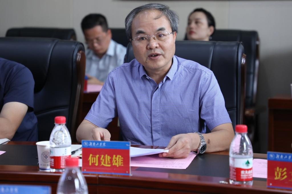 何建雄代表学校对杨秀康副市长一行表示诚挚欢迎,并介绍了学校的历史沿革及办学特色。何建雄指出,此次交流是继校长曹执令率队来宁开展政校企产学研交流、访企拓岗活动,双方签订校地战略合作协议后,校地双方为落实协议内容开展的又一次精准对接。何建雄强调,双方要务实重行,着力推动科技互动、科技成果供需对接、科技成果转化、政企人员继续教育和短期培训、大学生实践实习就业等工作落地落实,大力推动宁乡产业链和学校创新链精准对接、宁乡人才链和学校教育链有机互动,让学校的科研智慧、项目精华、人才团队在宁乡这片沃土上演绎精彩。