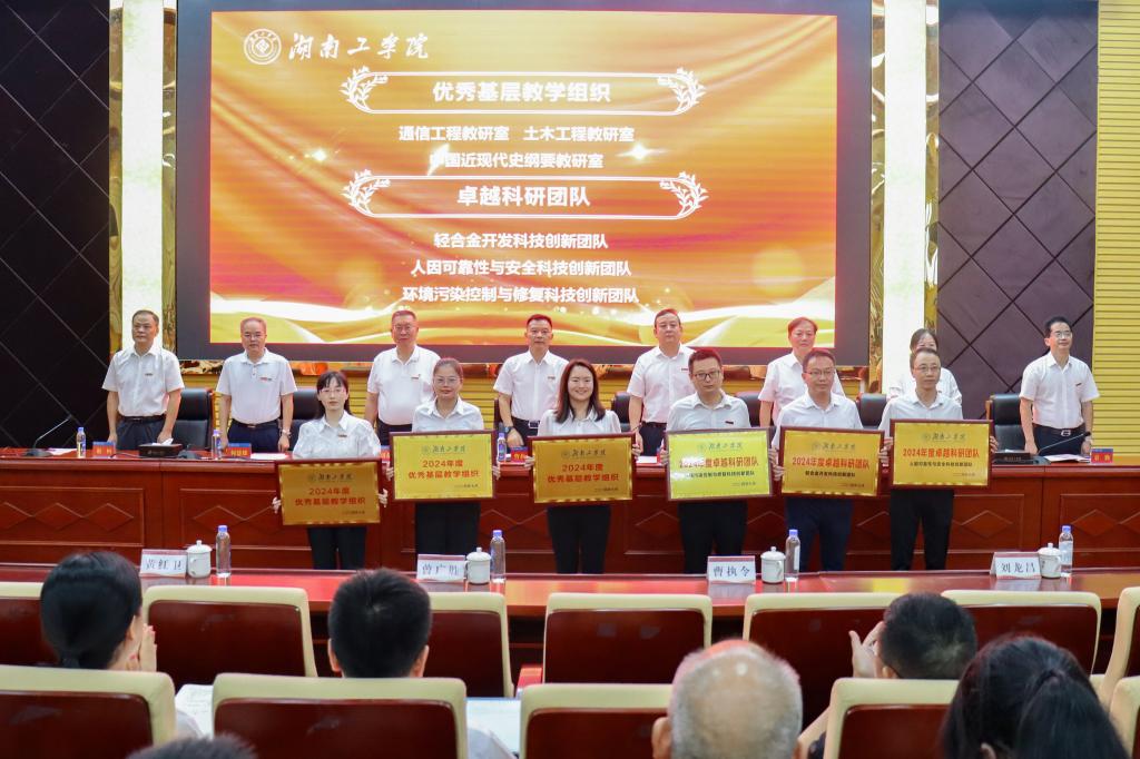 党委委员、副校长刘龙昌、黄红卫、何建雄、谢柯,以及副校长柳星,党委委员袁勤分别宣读了表彰决定。邓佩然等一批优秀教育工作者、教学名师、师德楷模、教学标兵、教学新秀、科技创新标兵、社会服务标兵、模范辅导员、优秀班主任、退役军人、先进工会干部、思想政治工作先进个人、思想政治理论课先进个人、思想政治工作先进单位、示范基层教学组织、优秀基层教学组织,以及获得省级以上荣誉的集体和个人获得了表彰。校领导为先进集体颁发奖牌。