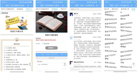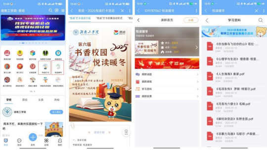 校易班发展中心依托易班APP、微信公众号、学工部官网“三端”联动,开展“湖工悦读打卡”活动。“每日打卡”激发参与热情,“团队PK”强化协作互动,“云端书评”促进思想交流,“数字签名墙”记录成长轨迹。