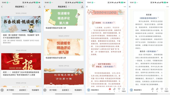 “易起游湖工”微信公众号专题推送“悦读暖冬”精选评论主题贴30弹,精选读书心得654篇,实现量级传播。