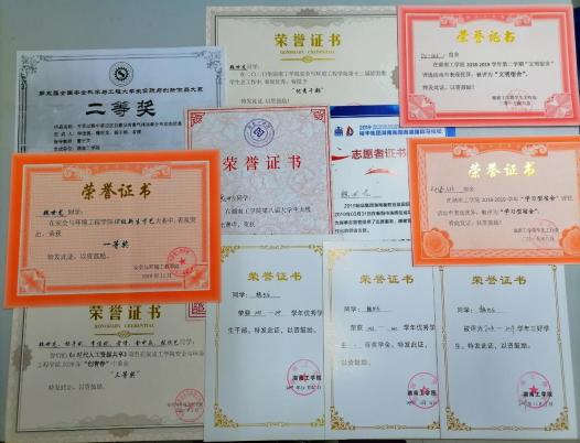 在校期间荣获全国第5届安全科学与工程大学生实践与创新作品大赛二等奖,校级一等奖学金1次,五四优秀团干1次,优秀学生干部2次,三好学生1次;2022年以项目负责人的身份参加湖南省大学生创业创新省级项目的立项工作;第七届“互联网+”大赛校级三等奖,第四届伟德源自英国1946大学生电子商务大赛三等奖;在《煤矿安全》、《陕西煤炭》期刊分别发表论文2篇;暑期参与社会实践活动,荣获优秀个人,多次参加公益活动,被评为首届衡阳市国际马拉松优秀志愿者。