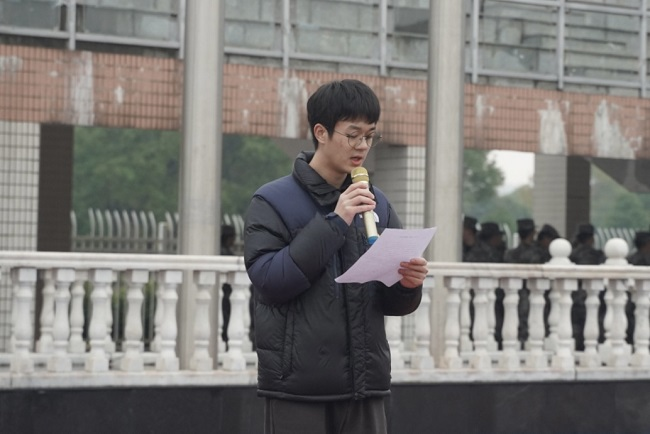 升旗礼毕,在庄严的国旗下,学院举行了以“学习宣传贯彻党的二十大精神,自觉维护宪法权威”为主题的“宪法晨读”活动。学院团委学生副书记陈旭在国旗下领学《宪法》部分内容,倡导同学们学习宪法、尊崇宪法、弘扬宪法。学院团委学生副书记王一哲作《学习党的二十大精神,争做新时代好青年》的主题演讲。他表示,作为新时代青年大学生,我们要认真践行党的二十大精神,坚定理想信念,敢想敢为又善作善成,立志做有理想、敢担当、能吃苦、肯奋斗的新时代好青年。