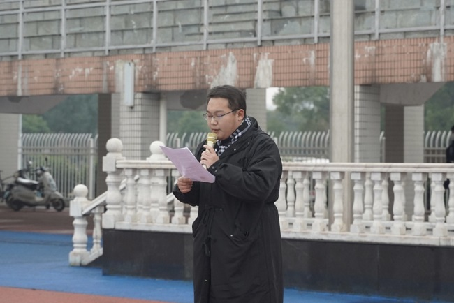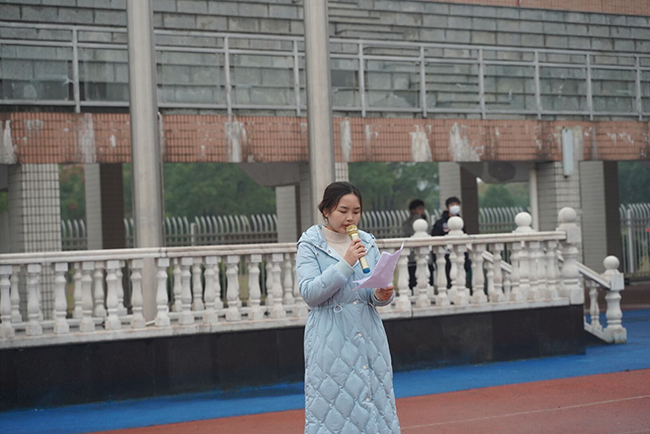 学工办主任兼分团委书记傅娜主持升旗仪式