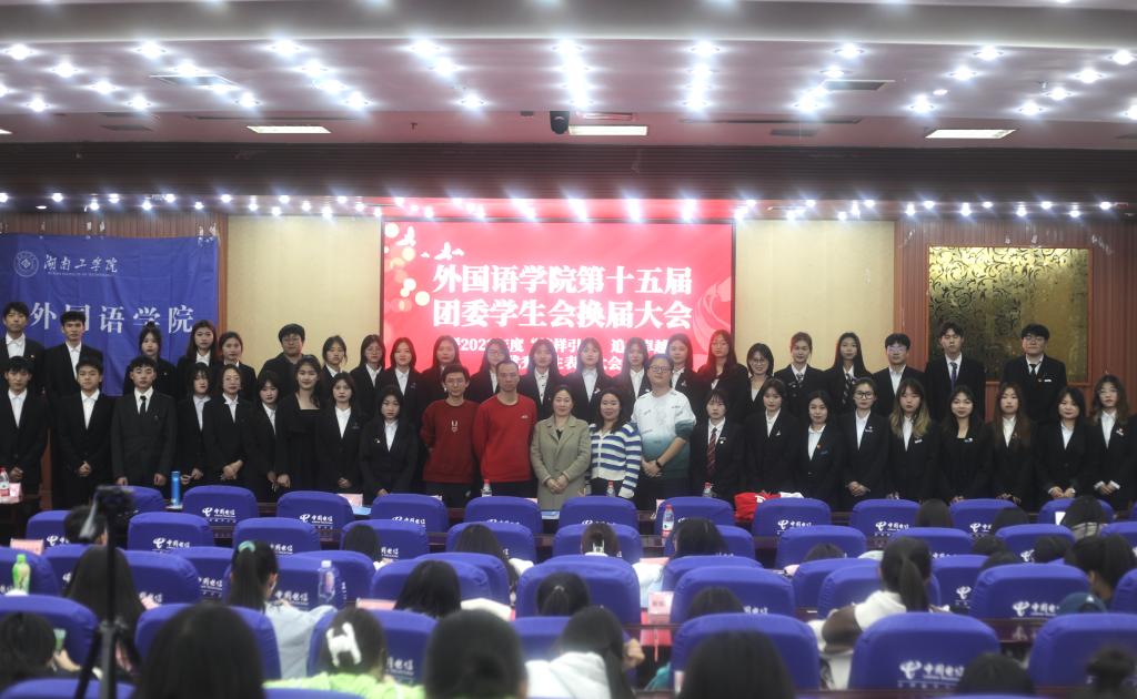 3月16日晚,外国语学院“榜样引领、追求卓越” 表彰大会暨第十五届团委学生会换届大会在蔡伦报告厅隆重举行,学院党委副书记周艳红,学工办主任兼分团委书记张伟平、全体辅导员,团委学生会所有成员、校团委代表、校学联代表及各兄弟学院主席团代表出席了本次换届大会。