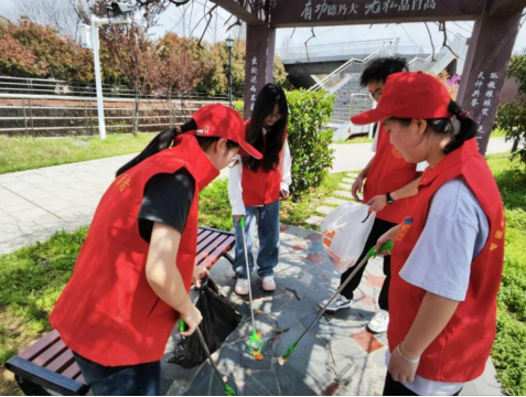 捡拾公园垃圾 助力文明创建